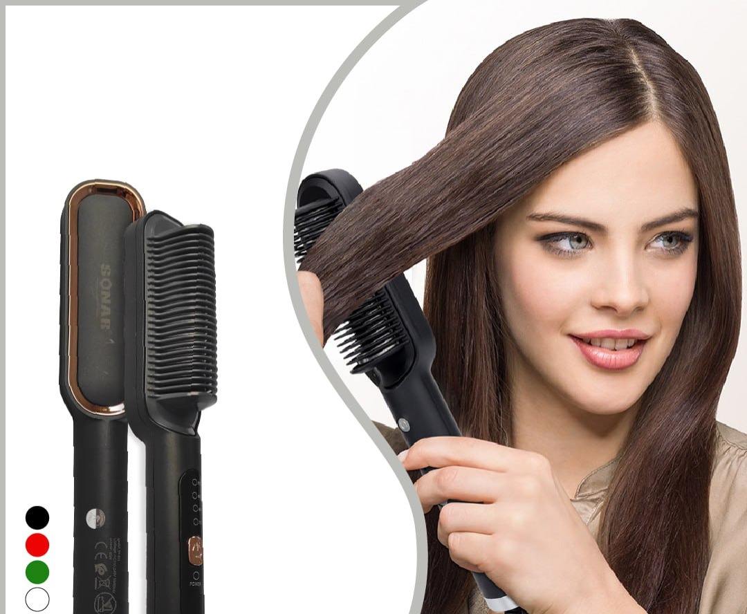 Consigue un cabello radiante, suave y libre de frizz en tiempo récord. El Cepillo Alisador Sonar combina la potencia de una plancha profesional con la facilidad de un cepillo convencional. Es la solución ideal para lucir un peinado impecable todas las mañanas, manteniendo el movimiento natural y el volumen de tu fibra capilar.